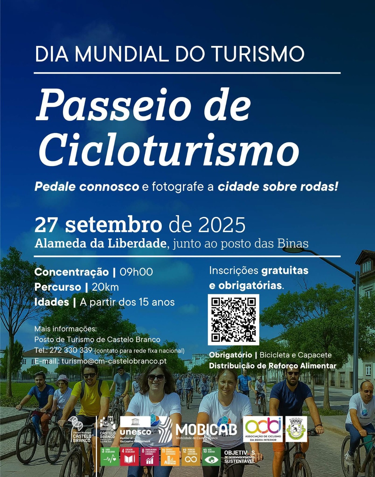O Município de Castelo Branco vai assinalar o Dia Mundial do Turismo, a 27 de setembro, com a realização de um passeio de cicloturismo. A iniciativa pretende promover a prática desportiva, o turismo sustentável e a valorização do território local.