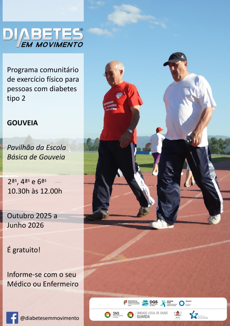 O programa comunitário “Diabetes em Movimento” regressa a Gouveia a partir de 1 de outubro de 2025, numa parceria entre a Câmara Municipal e a Unidade Local de Saúde da Guarda.