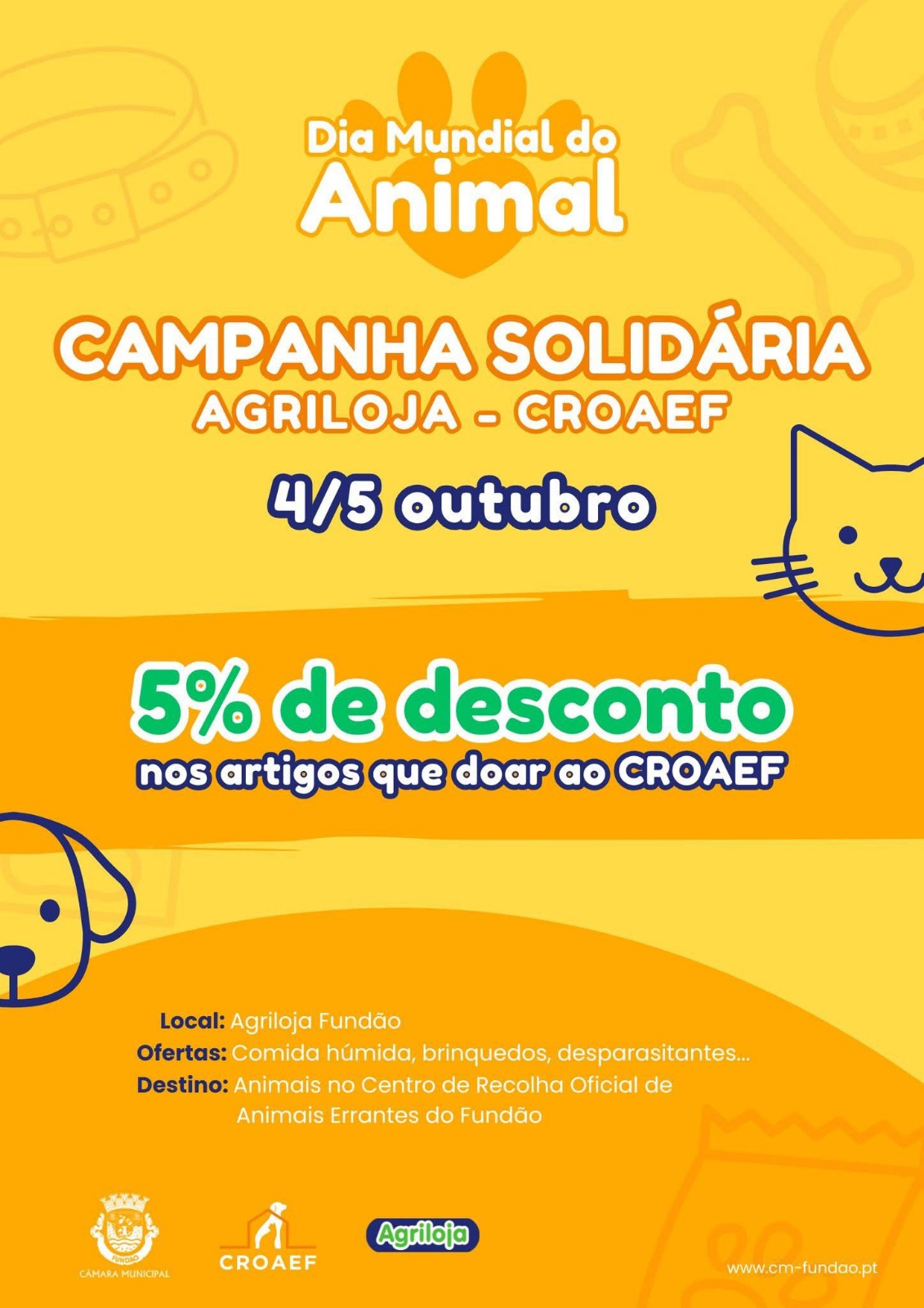 A Agriloja do Fundão, em parceria com o CROAEF – Centro de Recolha de Animais Errantes do Fundão, realiza nos dias 4 e 5 de outubro uma campanha solidária em favor dos animais.