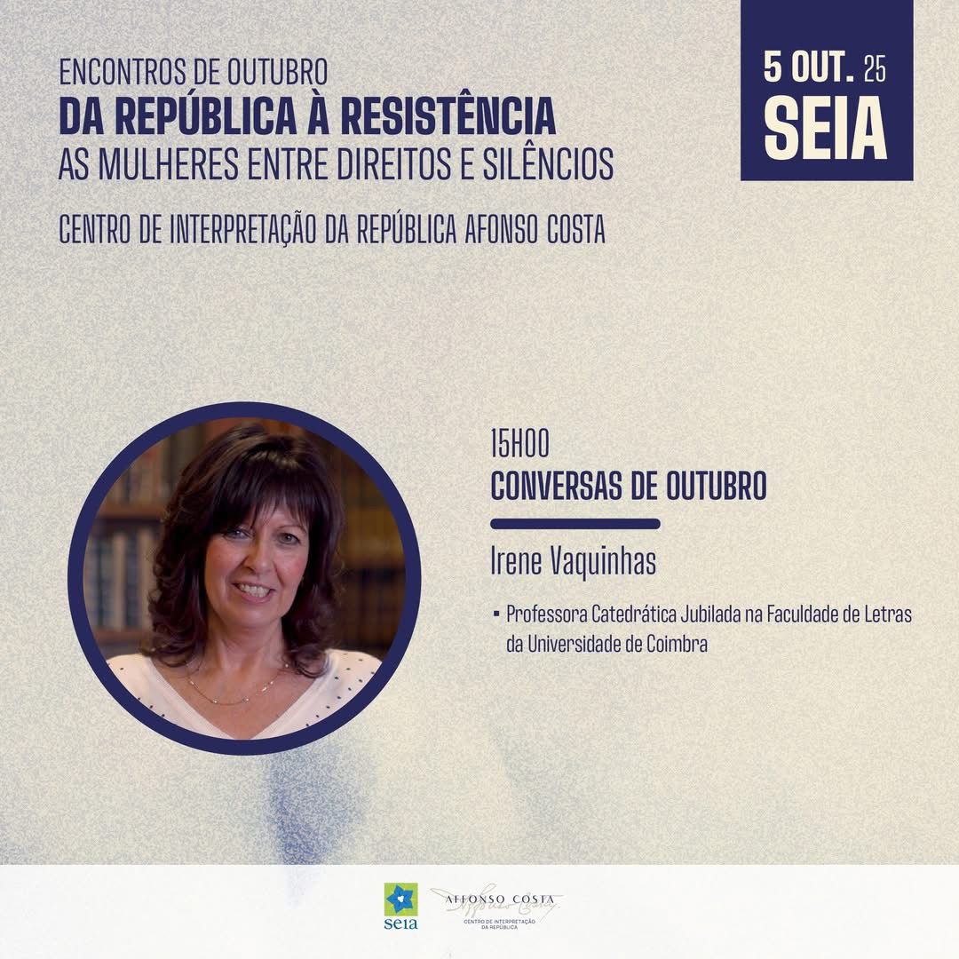 Sob o tema “Da República à Resistência: a Mulher entre Direitos e Silêncios”, a sessão conta com a intervenção de Irene Vaquinhas, Professora Catedrática da Universidade de Coimbra, especialista em História das Mulheres e do Género.