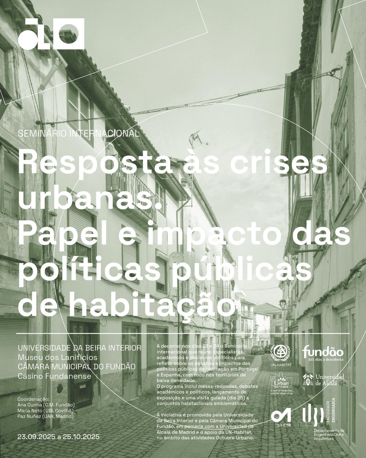 A Universidade da Beira Interior (UBI) e o Município do Fundão promovem, entre os dias 23 e 25 de outubro de 2025, o Seminário Internacional “Respostas às Crises Urbanas: Papel e Impacto das Políticas Públicas de Habitação”, uma iniciativa que pretende fomentar o debate sobre as respostas públicas à crise habitacional e o papel da arquitetura e do urbanismo na coesão social e territorial, em especial nos territórios de baixa densidade.