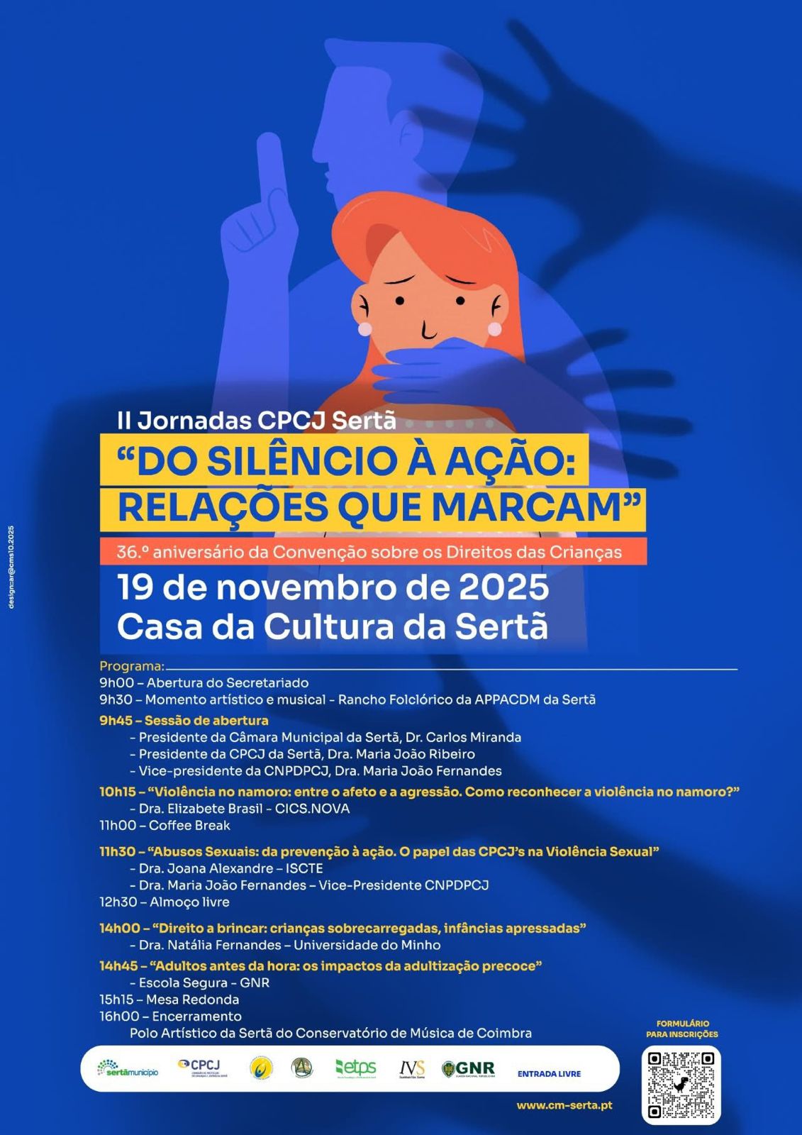 O programa completo e mais informações podem ser consultados no site da Câmara Municipal da Sertã:  https://cm-serta.pt/lista-eventos/1830-ii-jornadas-cpcj-serta-novembro-2025