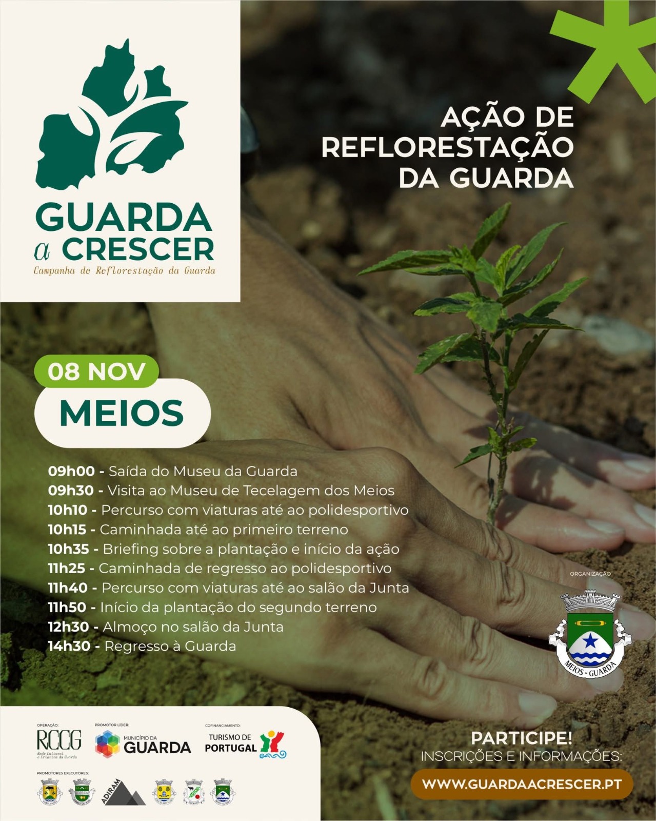 O projeto “Guarda a Crescer” é uma ação da operação RCCG, cofinanciada em 90% pelo Turismo de Portugal, no âmbito do Programa Transformar Turismo: Regenerar e Valorizar Territórios – Incêndios 2022.