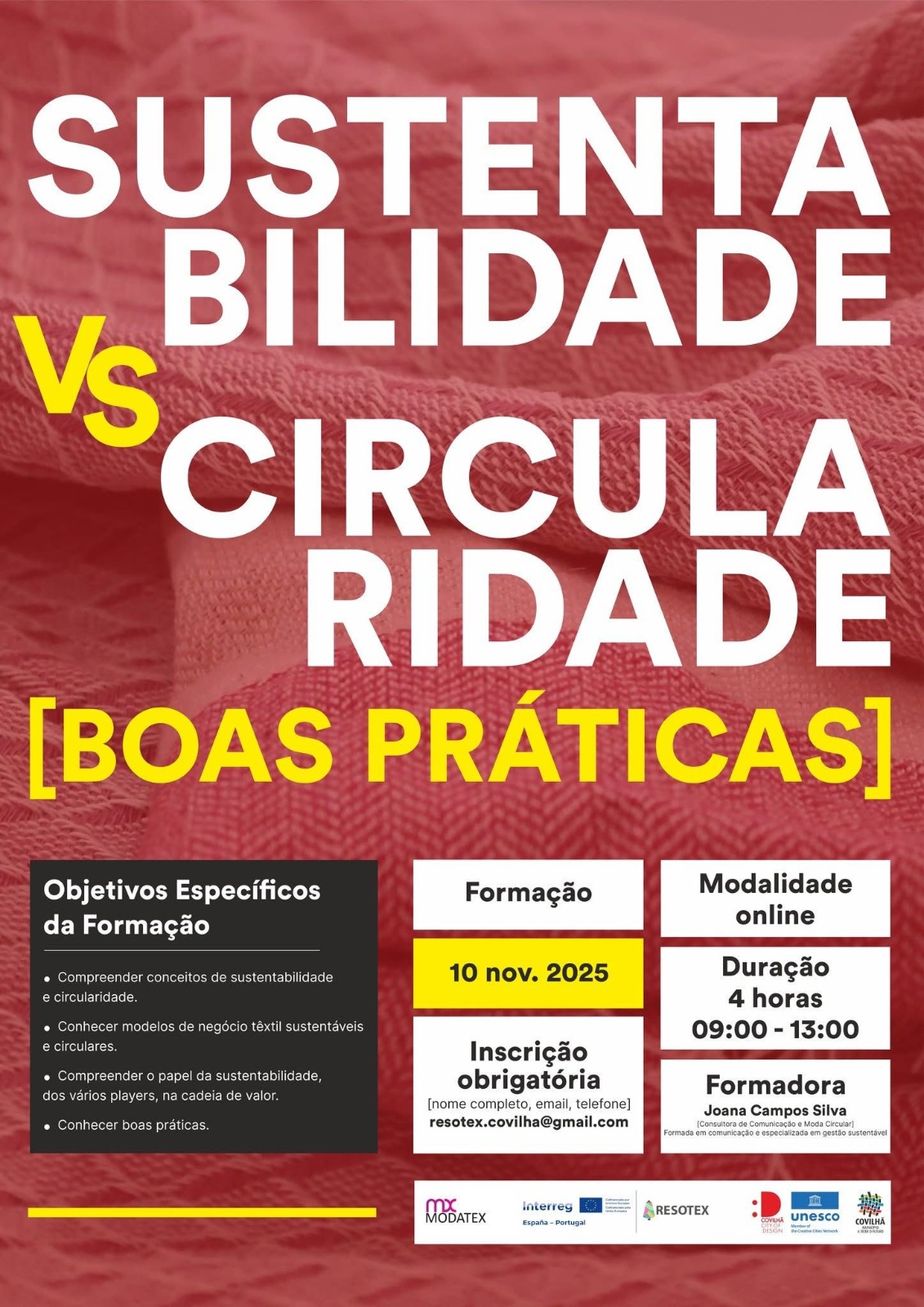 A participação é gratuita, mas requer inscrição obrigatória, que pode ser feita através do e-mail resotex.covilha@gmail.com.