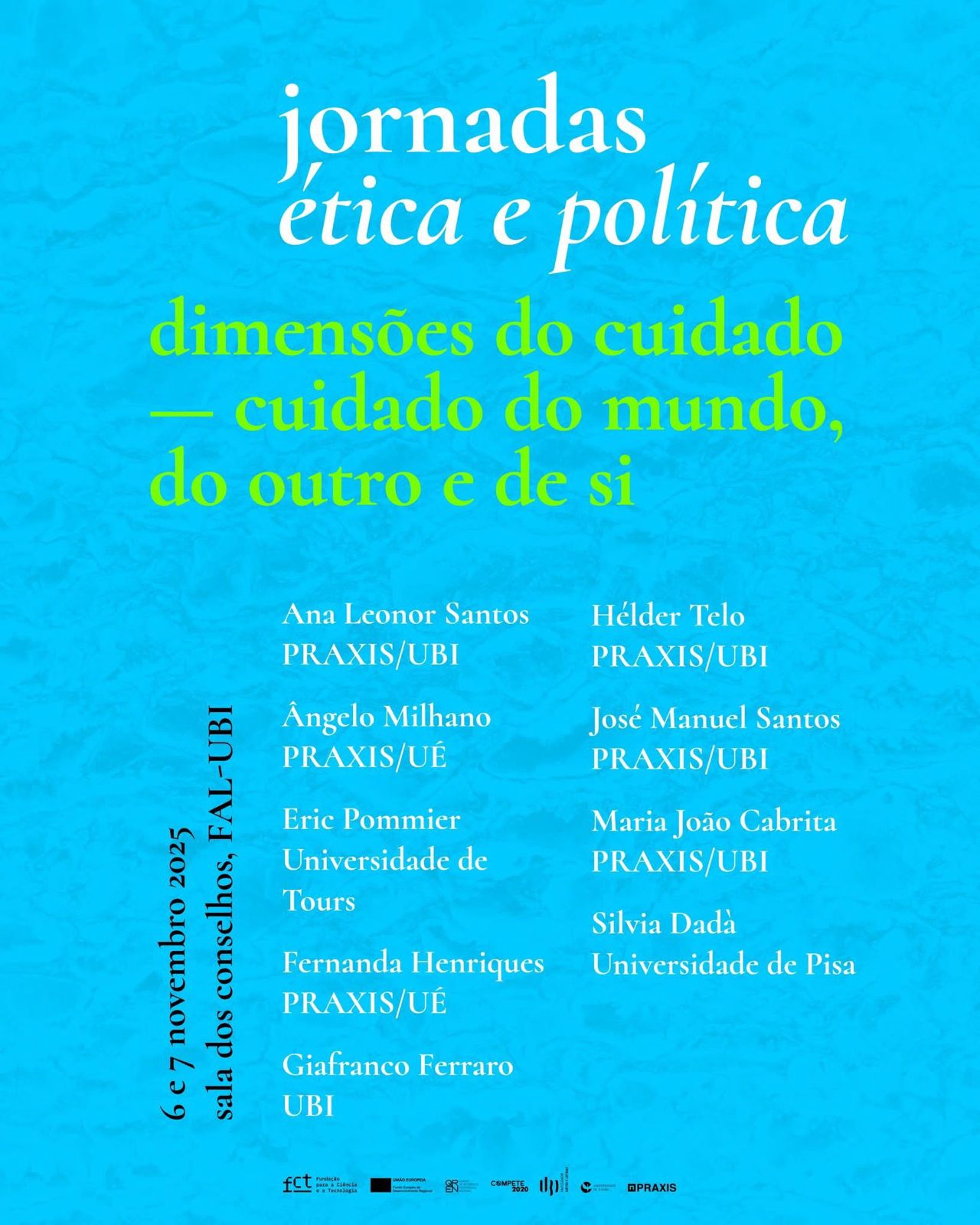 As Jornadas de Ética e Política pretendem refletir sobre o papel do cuidado nas suas várias dimensões — individual, social e global —, através da promoção do diálogo entre a filosofia, a ética e a política contemporâneas.